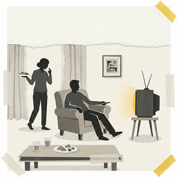 It usually starts with the sound of a chair scraping back hurriedly from the dinner table. All the while she sits, still eating, still present, still somehow responsible for what happens next. He’s already thinking about the sport highlights, the emails he needs to check, the comfortable indent his body has worked into the sofa cushions.